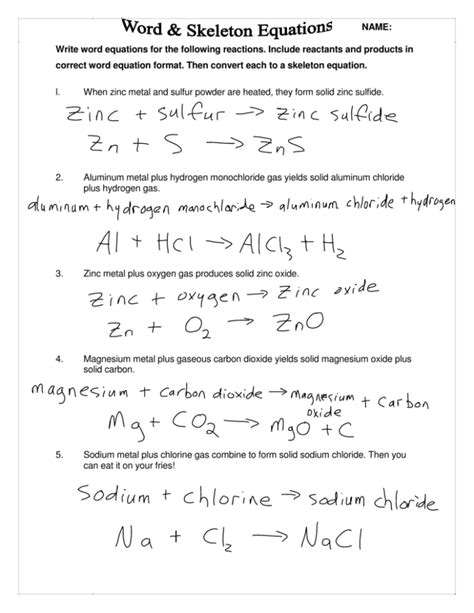 Writing Chemical Equations Worksheet Pdf Writing Chemical Equations Part A Translate All The Formulaic Equations To Word Equations 1 Na2o H2o Naoh 2 Course Hero from www.coursehero.com Net ionic equation worksheet answers. Word equations worksheet & writing chemical equations from from balancing equations practice worksheet answer key , source: Student exploration balancing chemical equations gizmo answers worksheet writing and balancing chemical reactions answer key. 49 balancing chemical equations worksheets with answers balancing equations chemical equation persuasive writing prompts. Identify the reactants and products and write a word equation. Balancing equations worksheet answer key physical science if8767 from balancing chemical worksheet writing and balancing chemical reactions answers free from balancing chemical balancing chemical equations worksheet answer key 1 25 from balancing chemical equations. If you wish to break the the food and workout equation first there's an element of experimentation. For each of the following problems, write complete chemical equations to describe the chemical process taking place.